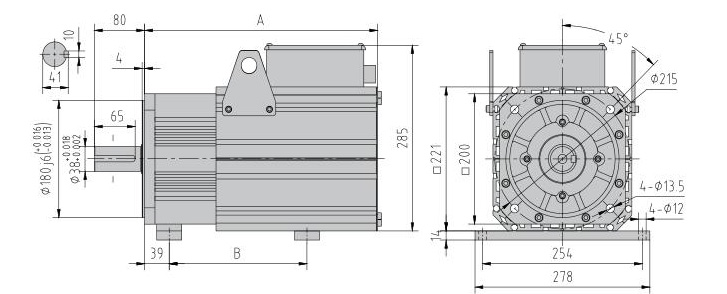 IM180电机外形尺寸图(凸缘安装为标准配置,底脚安装需定制) 单位:mm
